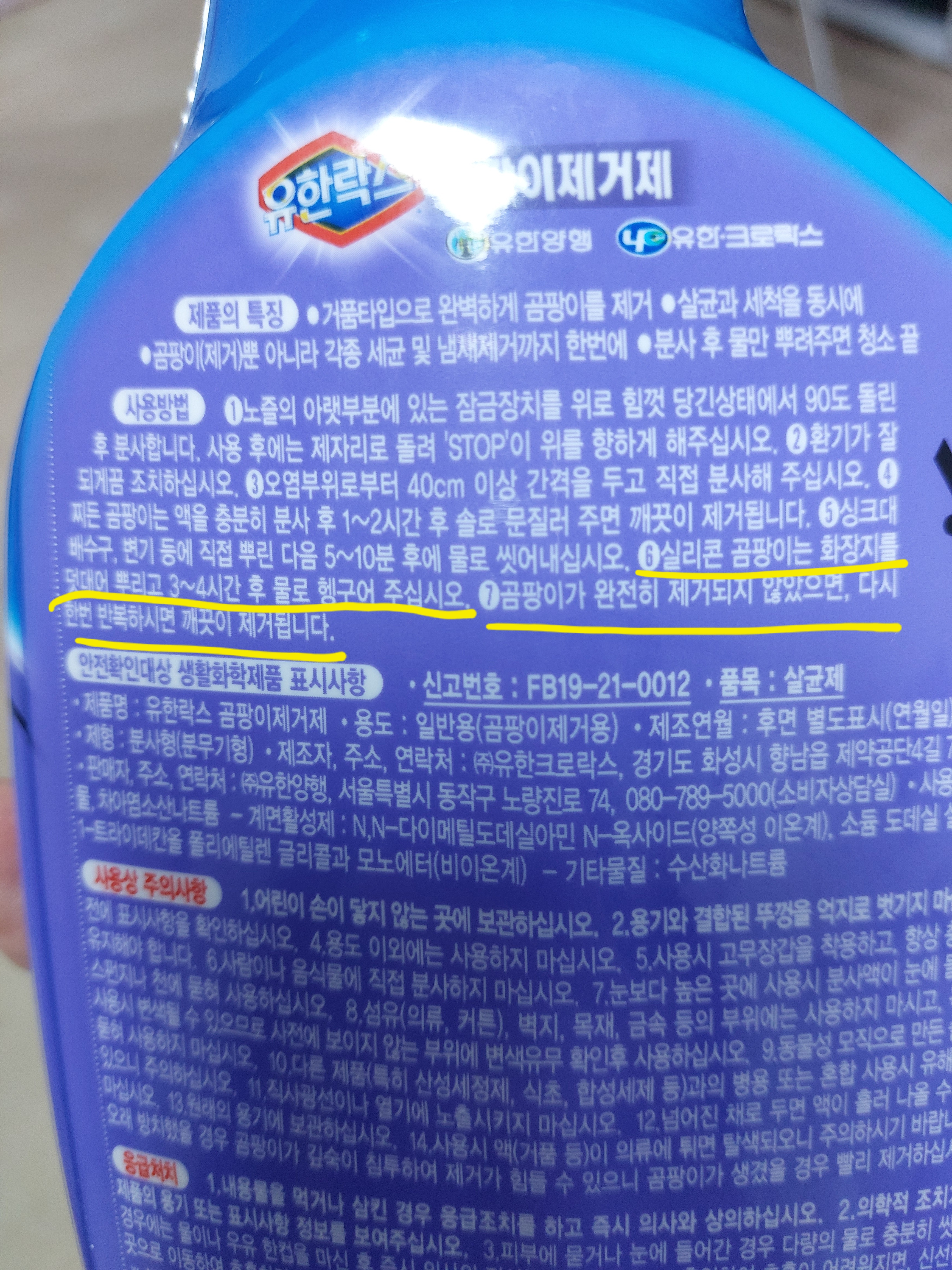 2. 유한락스 곰팡이 제거제로 실리콘 곰팡이 제거하는 법